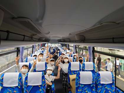 学校を出発しました。これから、信楽に向けてバスを走らせます。