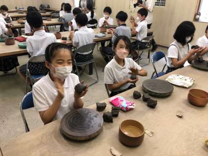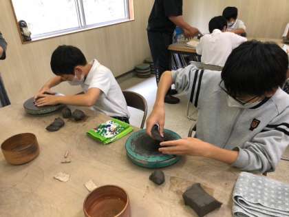 宗陶苑で、手びねによる作陶が始まりました。お茶碗、コップ、お皿など、思い思いに創作しています。