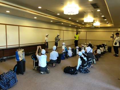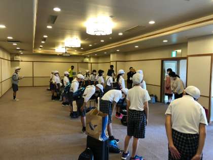 旅館の皆さんに見送られてバスは、志摩スペイン村に向けて出発です。約30分で到着予定です。
