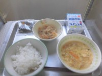 本日のメニュー ごはん 牛乳 中華風卵とコーンのスープ 麻婆春雨 ミニフィッシュ...