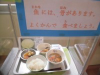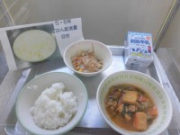 本日のメニュー ごはん 牛乳 豚肉と野菜のしょうが煮 焼きししゃも 小松菜と白菜...