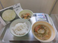 本日のメニュー ごはん 牛乳 ちゃんこ汁 豚肉のしょうが炒め です。 「ちゃんこ...