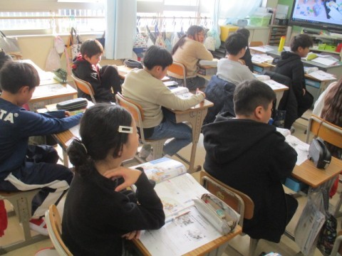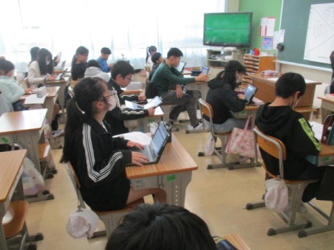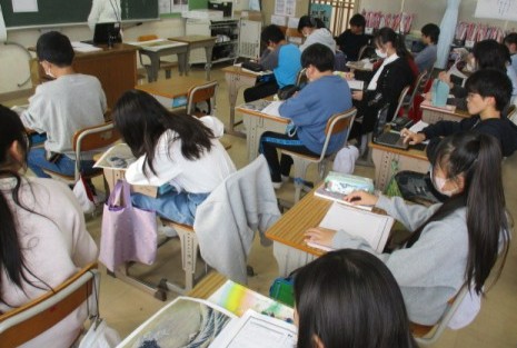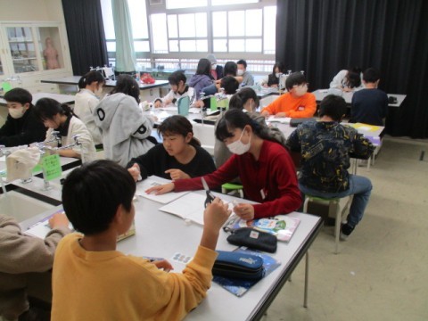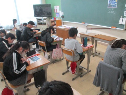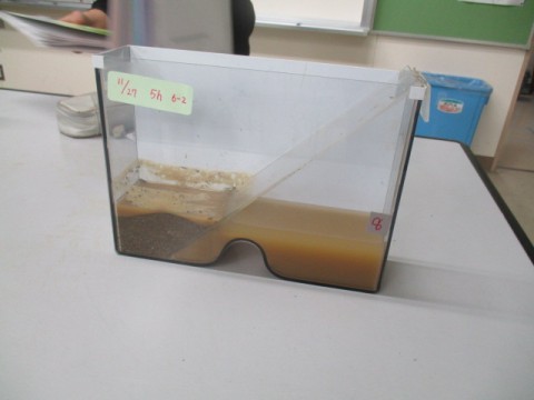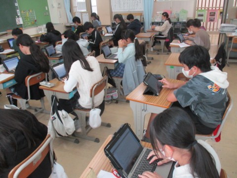 1組は将来の夢について原稿をパソコンに打ち込んでいました。2組は「大地のつくり」について,地層がつくられるようすを器具を使って観察しました。