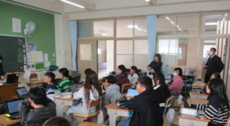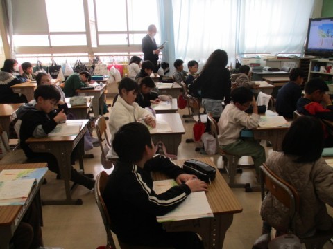 三原台中学校,三原台小学校の教職員が本校の授業を参観に訪れました。1~6年の全クラスを公開して子どもたち学ぶ姿を観察し,授業後に意見交換をしました。