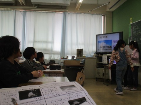 今日は、子どもたちが「堺市観光大使」として発表する日でした。これまで、一人ひとりが堺市について詳しく調べ、パソコンを使って資料をまとめてきました。調べるたびに新しい発見があって、準備のときも楽しそうでしたね。いよいよ本番。少し緊張していたようすも見られましたが、スライド資料を提示しながら、堺市の各区にある名所や特徴を、自分たちの言葉で説明していました。調べ分かったことを精一杯最後まで伝えようとする姿が、とても印象的でした。