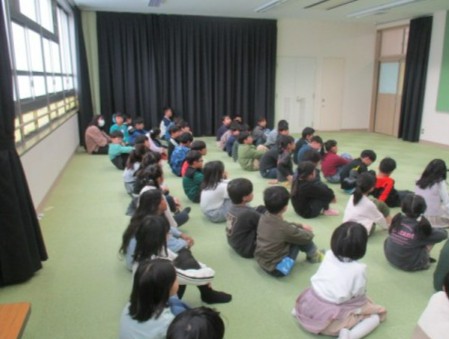 学年集会をしていました。学校での過ごし方などについて,先生のお話をしっかりと聞いていました。