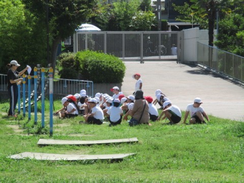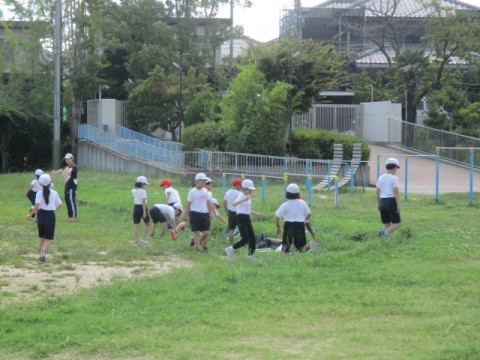 今日は暑さも少し和らぎ、運動場で体育をしていました。
