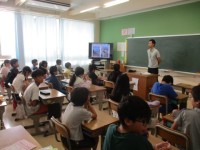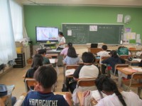 学校司書による読み聞かせです。本のタイトルは「キュリー夫人」