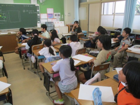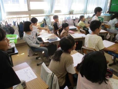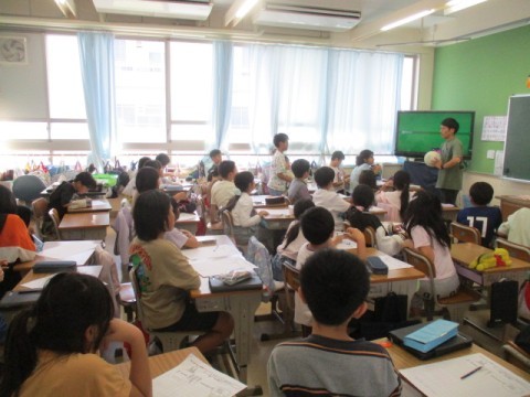 体育の学習で、ラインポートボールのルールや、ボールをパスするときの動きをみんなで確認していました。