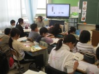 どんぐりごまを作っていました。つまようじを軸にして回してみると,思っている以上によく回転しますね。「めっちゃまわるで~」と言いながらこまを回していました。