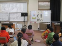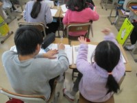 版画です。彫刻刀の使い方を学習していました。手の位置,刃の向き,持ちかた,回すのは板であることなど,先生のお話を真剣に聞いていました。
