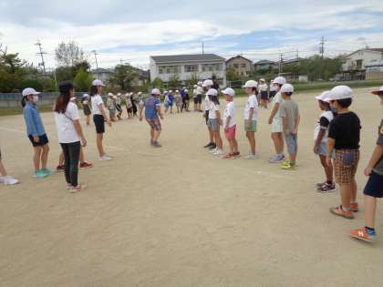 今日は11月にある『なかよし大なわ大会』へ向けての練習がありました。まだまだ暑さがあるなかでしたが、水分補給をしながら取り組みました。今日も6年生ありがとう!次回は10月!またよろしくお願いします。