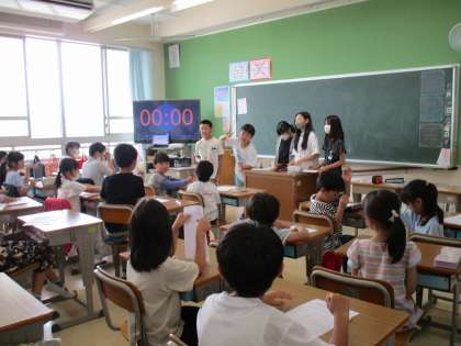 次々にじゃんけんをして、名前を書いたり書いてもらったりしている中に、下の学年の子に気遣い、声をかけている姿がたくさんありました。