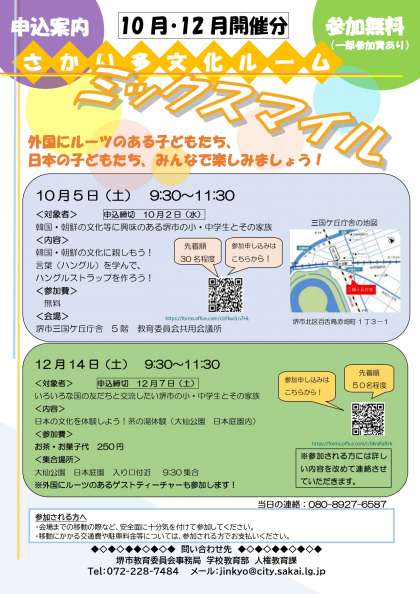 さかい多文化ルーム「ミックスマイル」が開催されます。 詳しくは→「案内」をご覧ください。