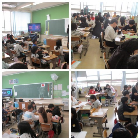 低学年では先生のお話をよく聞きながら学習し,中学年は課題について話したり聞いたりする活動がありました。高学年では課題についてグループの話し合い活動もあり,どの学年・学級もにぎやかな中にも充実した学習がすすんでいました。