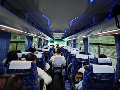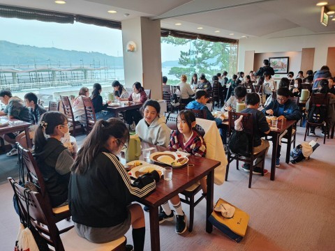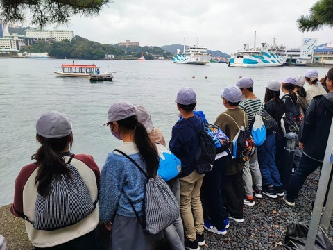 6年生 真珠博物館の見学をしたあと、学校に向かい13時45分に出発しました。車内ては、バスレク担当が楽しいクイズをしています。