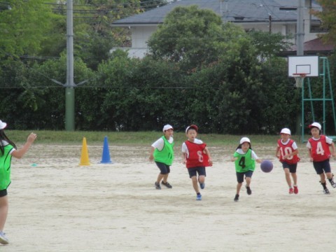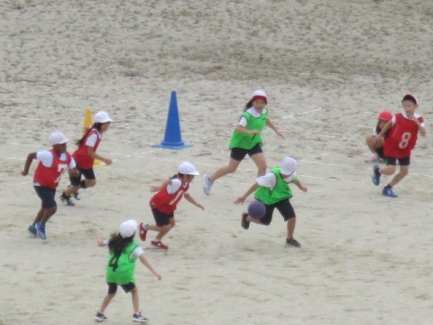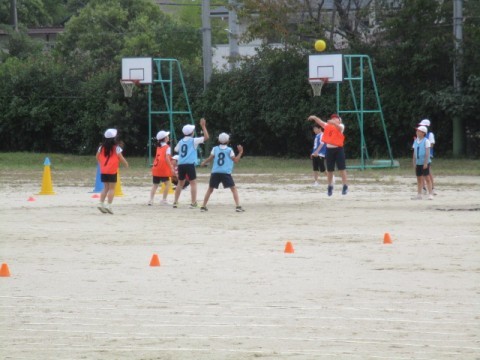 ラインポートボールです。ルールを上手に使いながらチームで協力してプレーしていました。