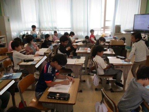 「1年生に読みたい本」をテーマに、各班で話し合いを進めています。今日は、一人ひとりが自分の選んだ本を決め、その理由を考えて書いていました。これから班ごとに、自分の考えを伝え合いながら、1年生に読んであげたい一冊を決めていきます。友だちと意見を交わす時間の中で、読む人の気持ちを考える力も育っていきそうです。