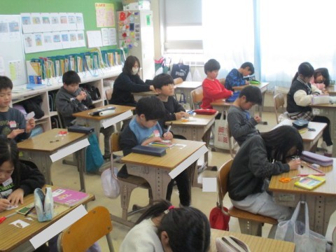 外国語活動では,自分が思う好きなものを英語で紹介し合っていました。図工では,自分の作品を使って友だちに点数を教えたり,ゲームをしてもらったりしました。どちらの授業も子ども自身が考えながら活動できる,とても楽しい時間になっていました。