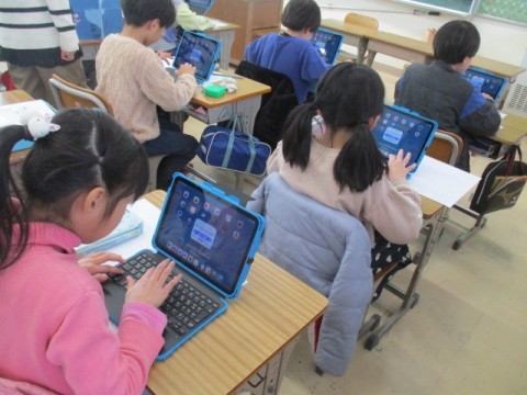 昨日,児童数分の新しいタブレットパソコンが入りました。ログインの仕方などの使い方を教えてもらいました。