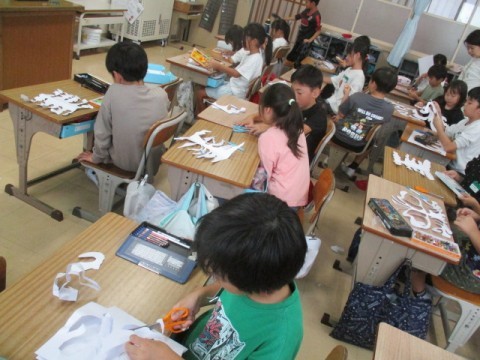 折って,切って,開いてみると,どんな形になるのかを楽しんでいます。