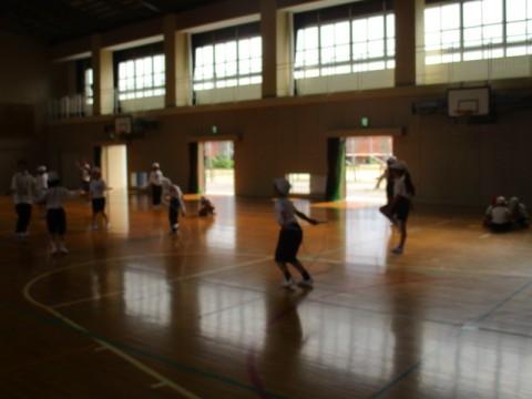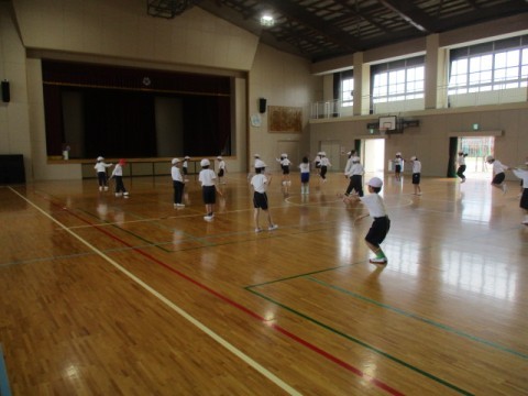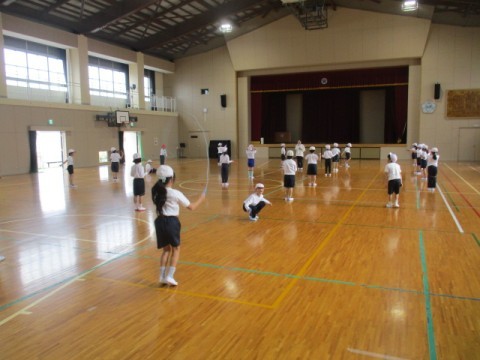 縄跳びをしています。少し寒さを感じる体育館でしたが,力いっぱい体を動かしながら運動しています。