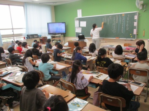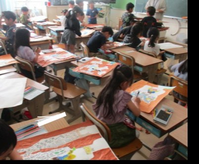 大型モニターに映し出せる「発表ボード」の使い方を練習していました。