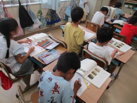説明する文章を読んでいます。いきもののなまえ、ばしょ、からだのことなど、