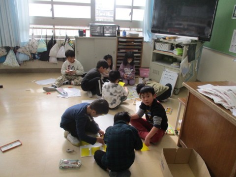 参観に向けての準備をしていました。小学校に入学してできるようになったことや学習したことなど,各グループで力を合わせて発表します。